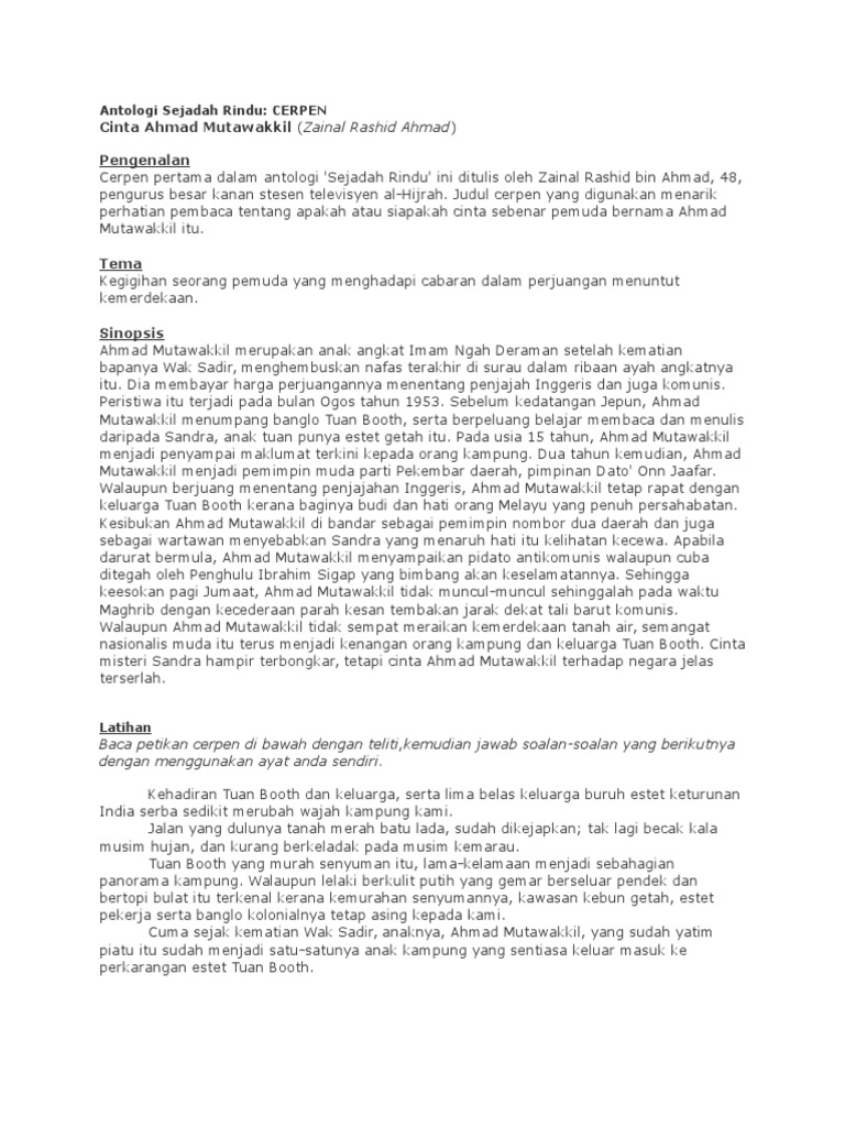 5 orang komunis memasuki banglo tuan booth dan mendesaknya supaya menasihati ahmad mutawakkil agar tidak menghasut. Ahmad mutawakkil belajar membaca dan menulis dengan sandra sehingga melayakkannya menjawat jawatan wartawan. Cınta ahmad mutawakkıl cerpen tıngkatan 5. Ahmad mutawakkil berasa terhutang budi atas kesudian sandra mengajarnya menulis dan membaca. Latar masyarakat (cerpen tingkatan 5).